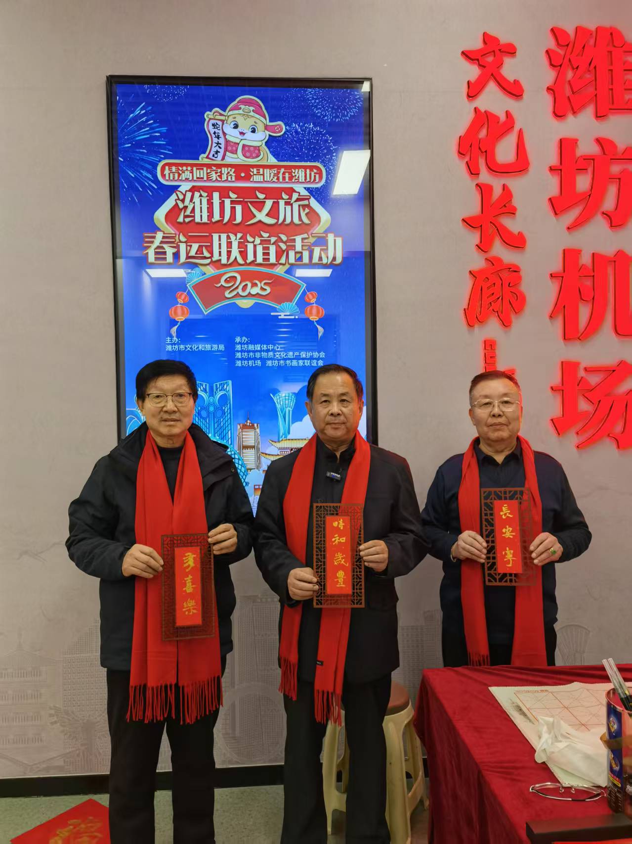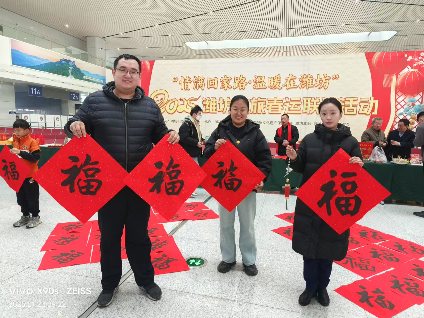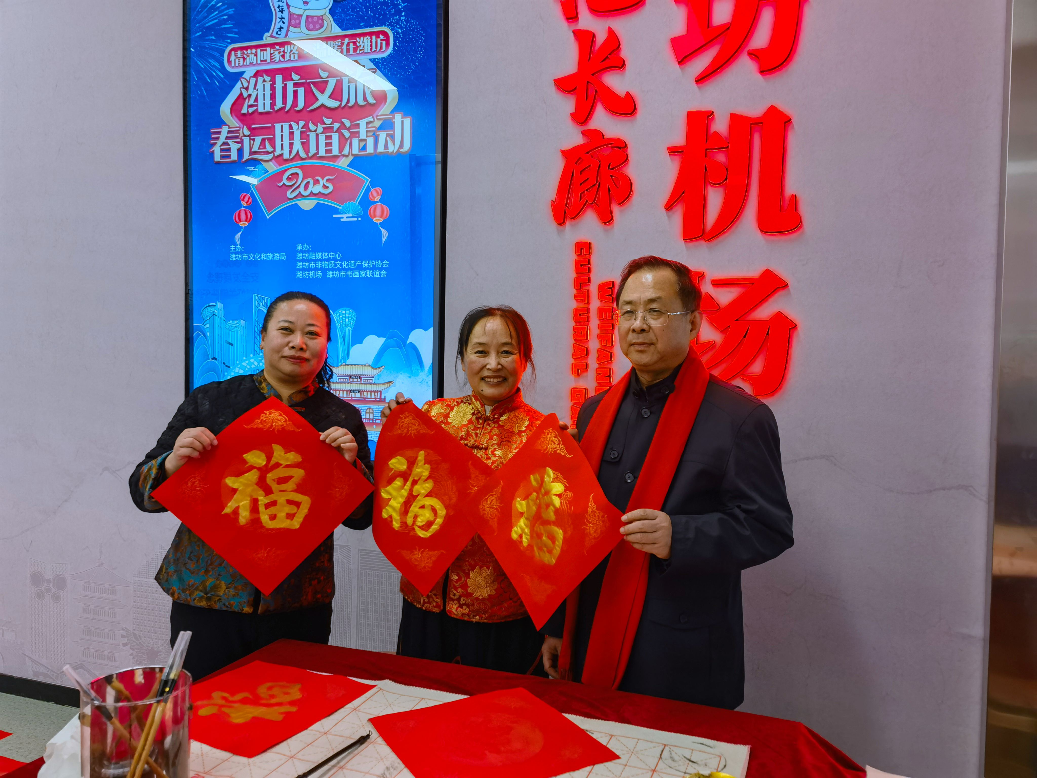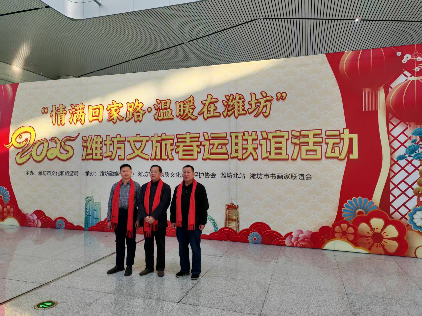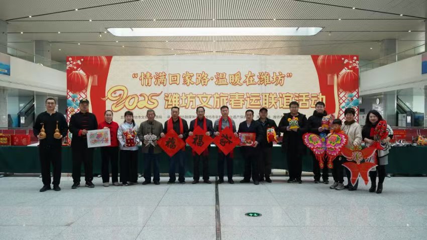 2025 年 1 月 20 日至 21 日,潍坊北站、潍坊站、潍坊机场的候车(机)大厅内洋溢着浓浓的新春气息,由潍坊市文旅局主办的“情满回家路 温暖在潍坊”2025潍坊文旅春运联谊送祝福活动在此热烈举行。