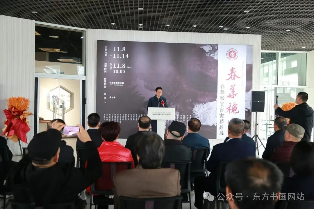 2025年11月8日上午10点,中国画都美术馆内充满了艺术气息,嘉宾云集,气氛热烈。由潍坊市文学艺术界联合会主办,潍坊市文化和旅游局指导,潍坊市美术家协会、潍坊市书法家协会学术支持,潍坊市书画家联谊会、潍坊市文艺志愿者协会承办,中国画都美术馆等协办的“更好潍坊”书画名家系列之“春华秋实”书画精品展在此隆重举行,书画展至11月13日。